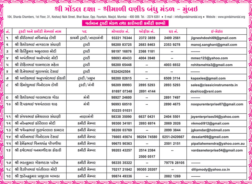 Shree Gondal Dasha - Shreemali Vanik Bandhu Mandal - Mumbai